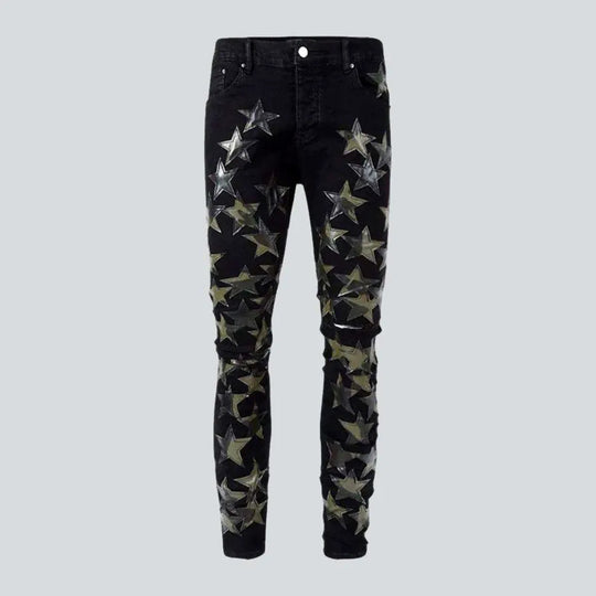 Black painted patch men's jeans