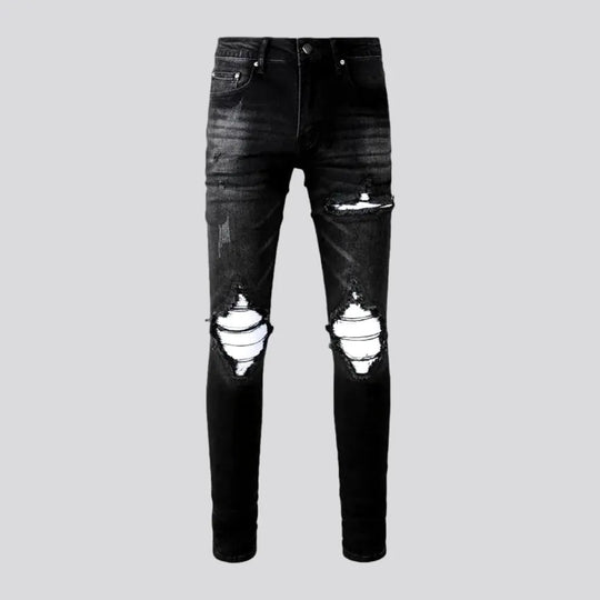 Distressed skinny biker jeans for men
