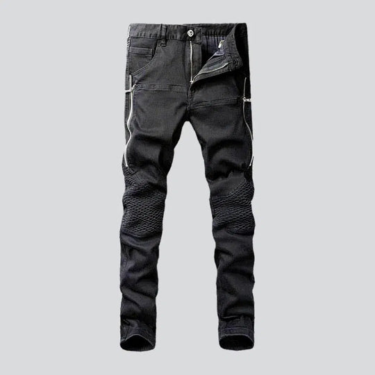 Side zippers skinny motorcycle jeans for men