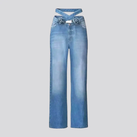 Sanded women's belt-waistline jeans